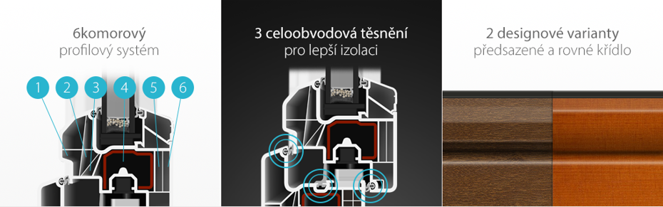 Díky své zdokonalené konstrukci se dvěma dorazovými a jedním středovým těsněním a možnostmi zasklení izolačním dvojsklem a trojsklem dosahují okna z tohoto systému výborných tepelně izolačních vlastností.